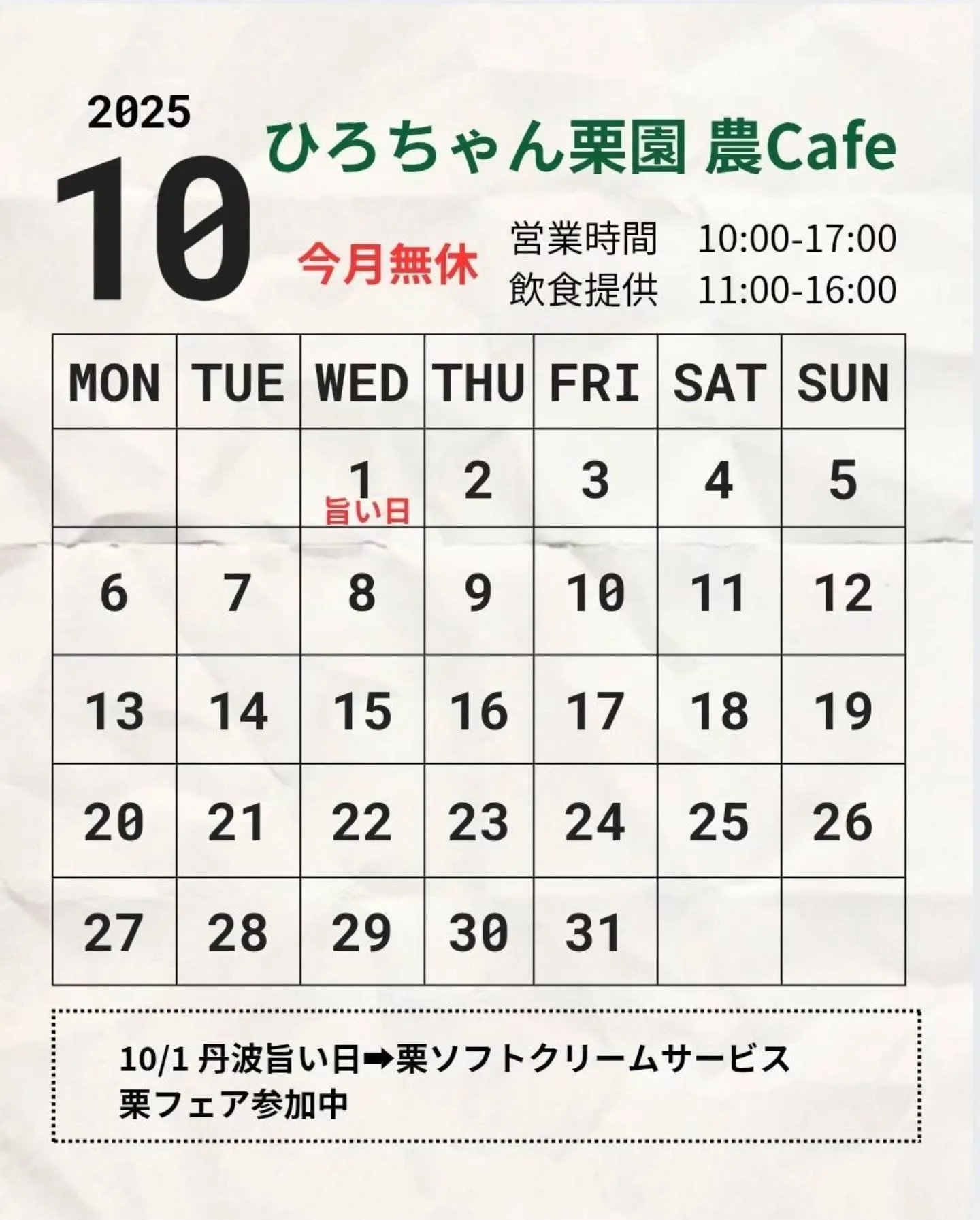 ✨ひろちゃん栗園 農Cafeからのお知らせ✨