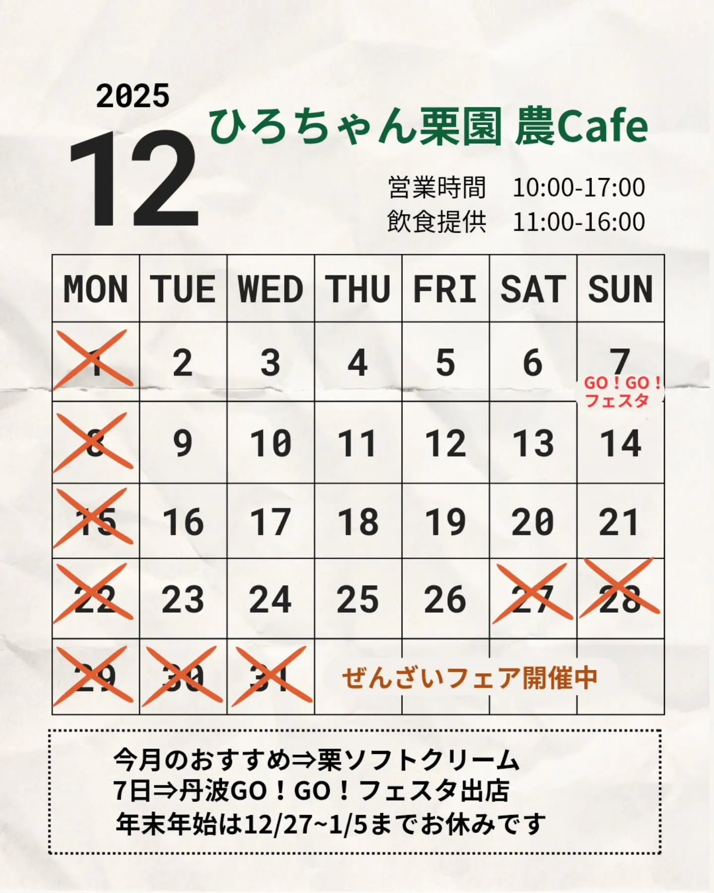 🎄ひろちゃん栗園 農Cafeから12月のお知らせです。